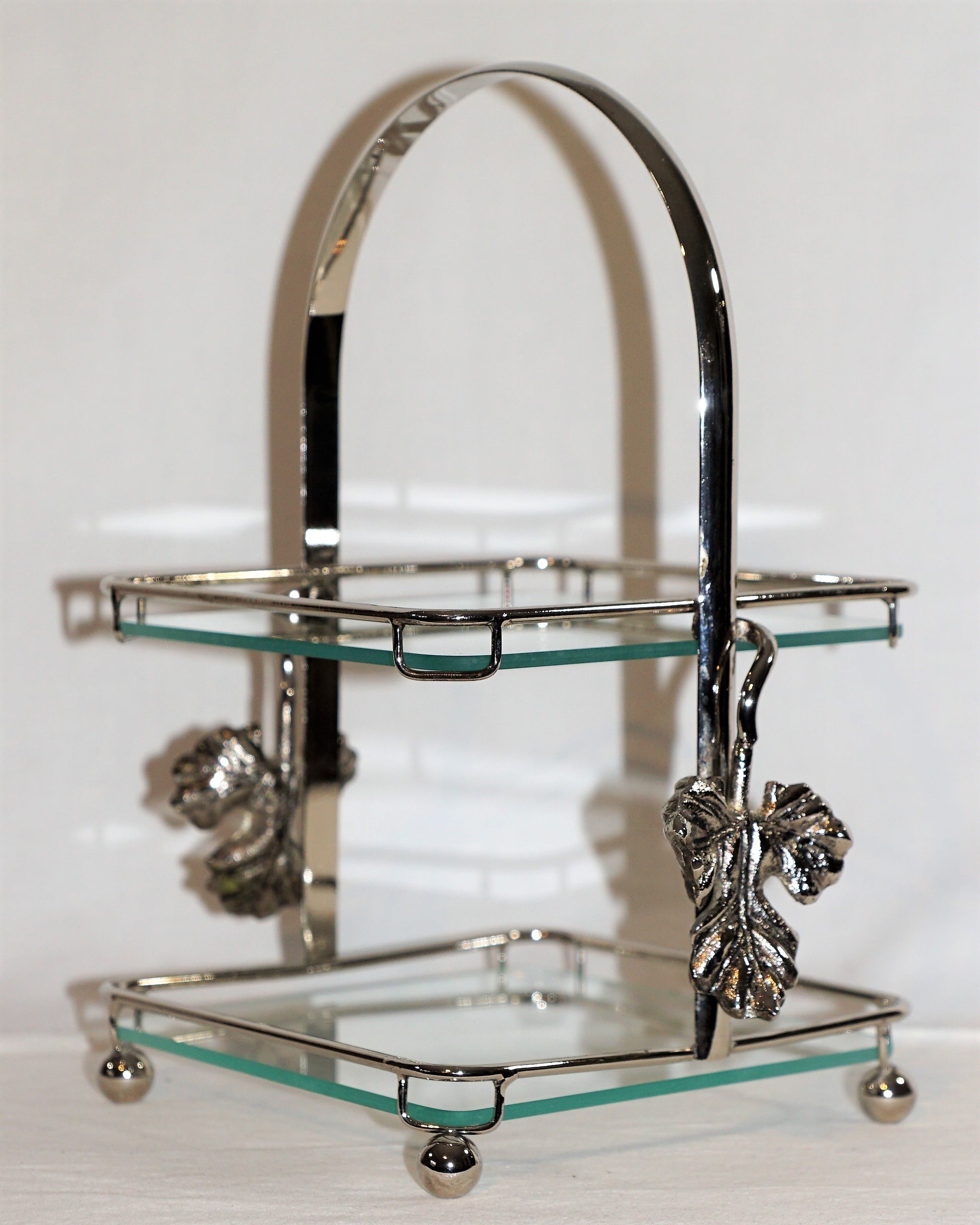 2er Etagere metallgehäuse und Glasboden, schön verziert.