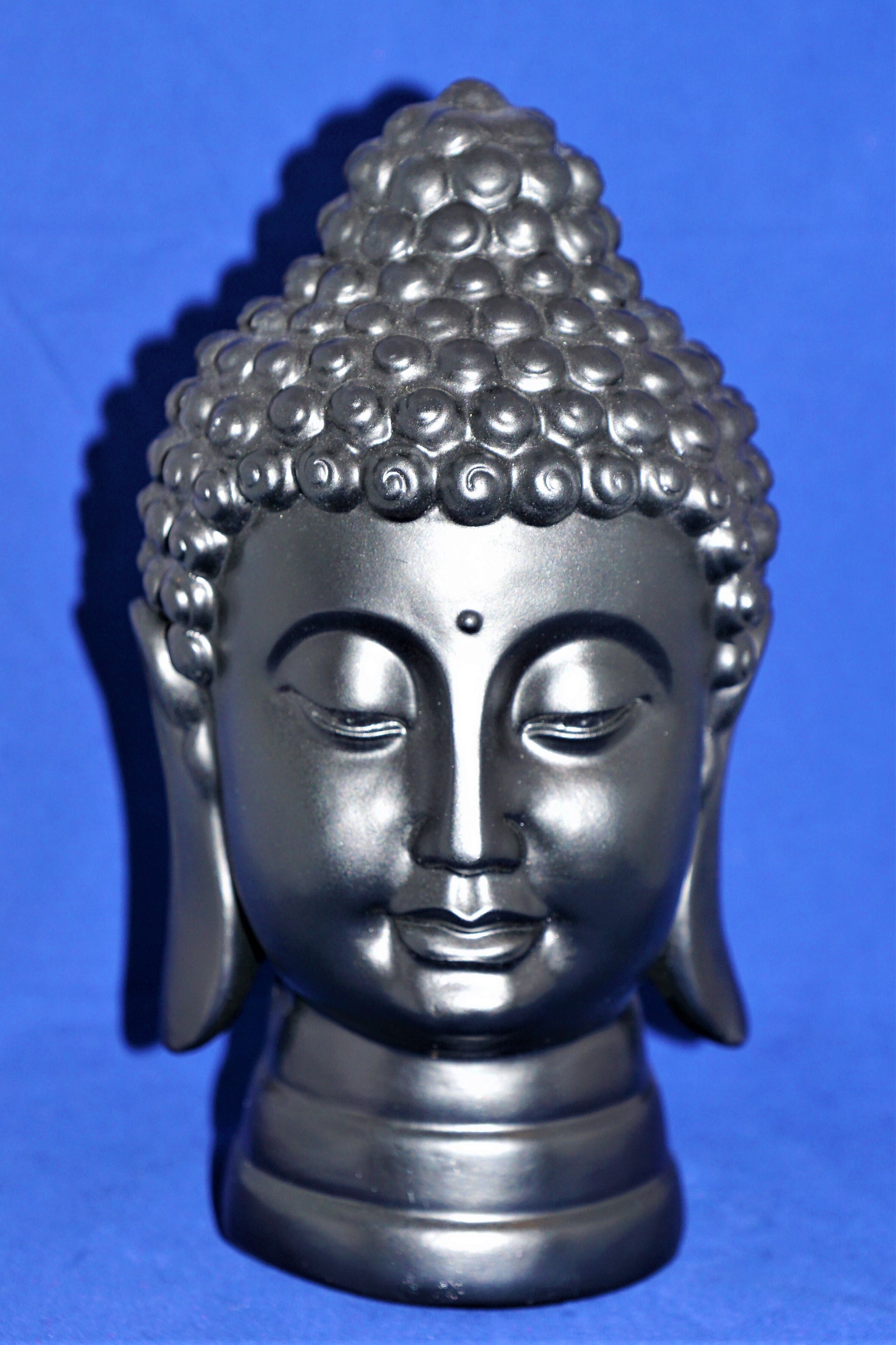 Buddhakopf schwarz aus Kunststoff.
