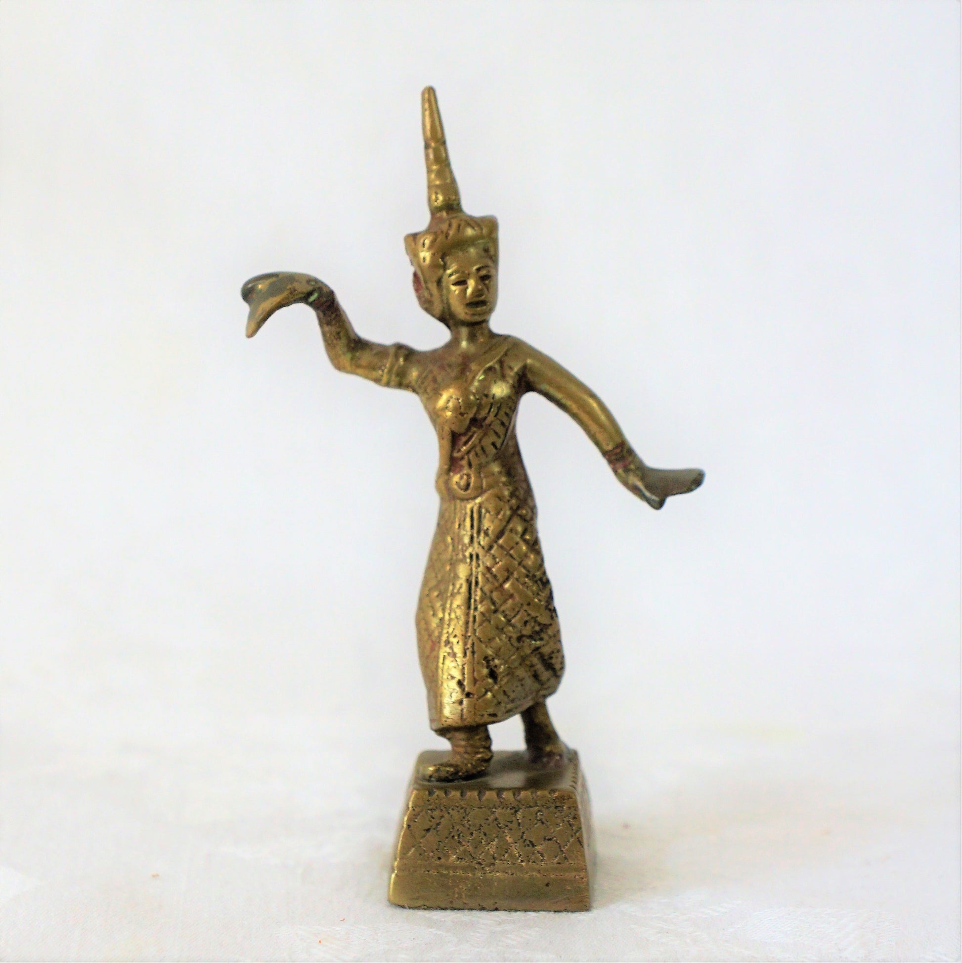 Vintage Messing Thai Buddhistische Tempeltänzerin. Gebrauchsspuren aufgrund des Alters aber sehr guter Zustand. 12cm gross. Quadratischer Sockel.